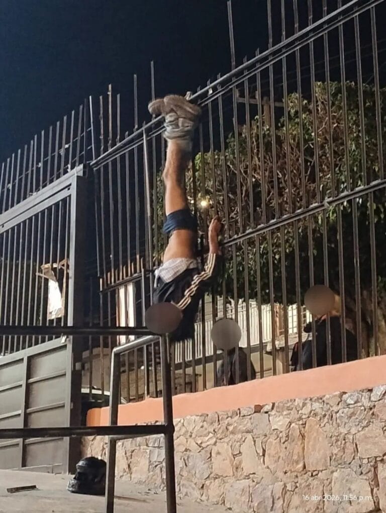 León, Gto.- Un joven quedó c0lg4d0 con la cabeza hacia ab4jo en el barandal perimetral de la Parroquia de San Martín de Porres, cuando presuntamente pretendía ingresar al templo a r0bar objetos sagrados. La pretina de su pantalón se atoró…